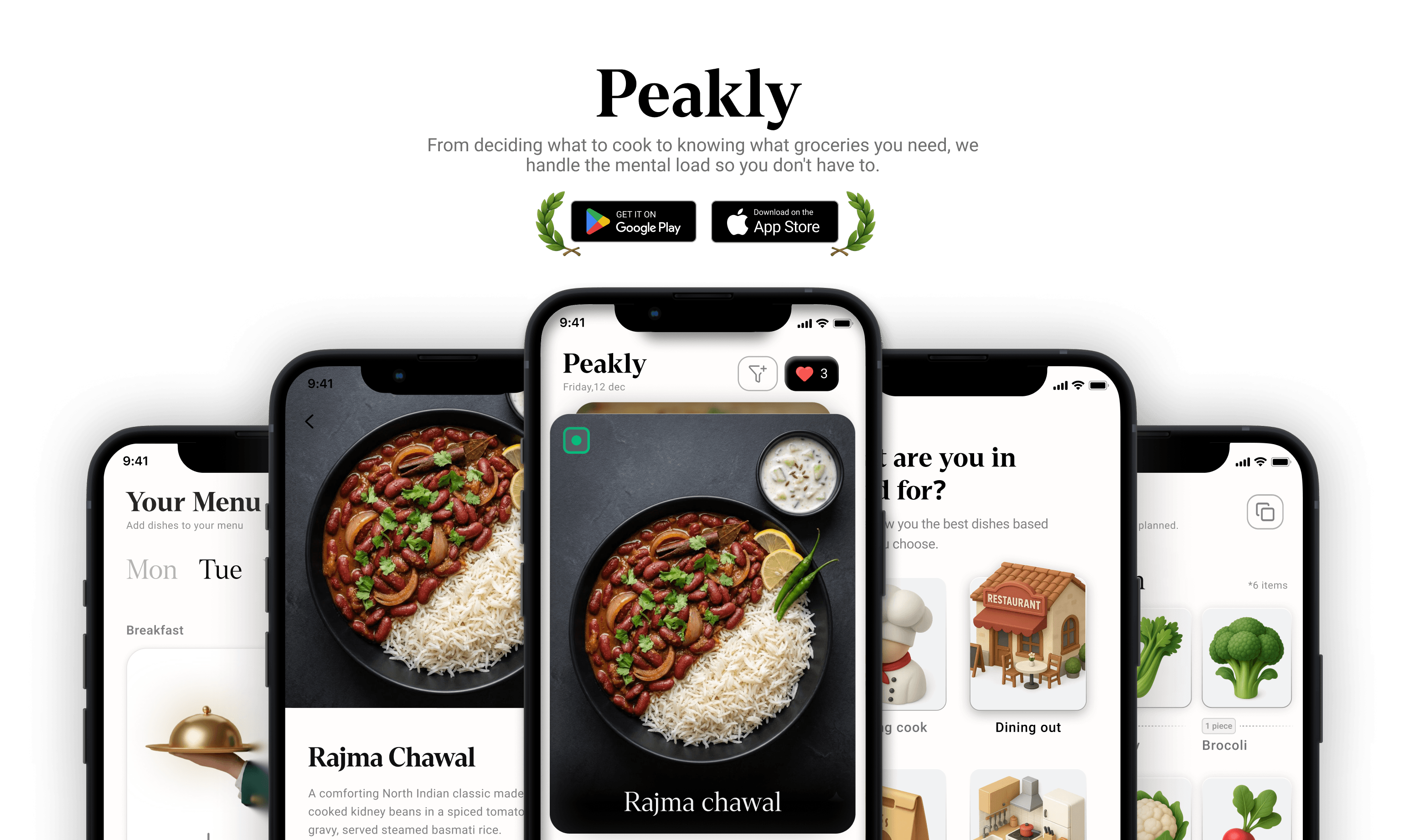 Peakly is a food discovery app - think Tinder for meals. Swipe through dishes, save what you're craving, share the recipe with whoever's cooking, and let the app build your weekly menu and grocery list automatically.